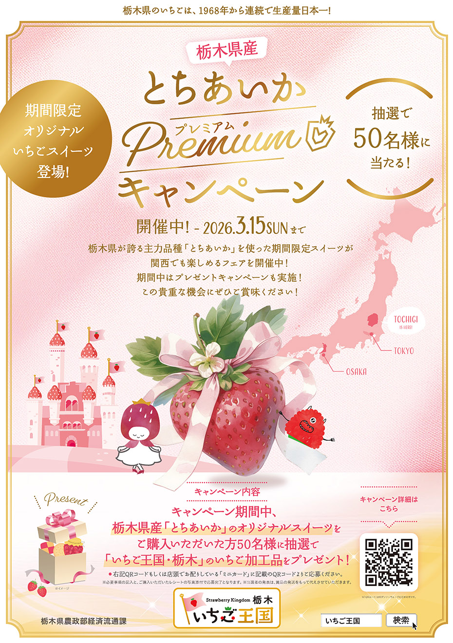 栃木県が誇る主力品種「とちあいか」の販売店が拡大中&期間限定スイーツが関西でも楽しめるフェアを開催中!
